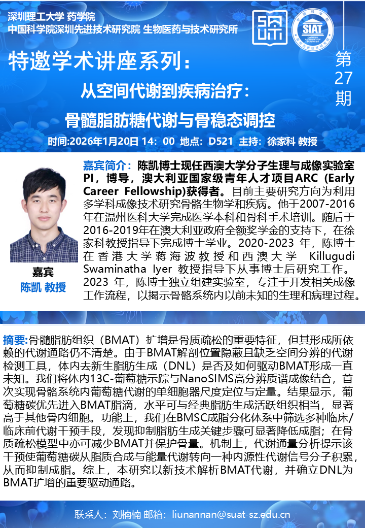 【特邀学术讲座第27期】从空间代谢到疾病治疗:骨髓脂肪糖代谢与骨稳态调控