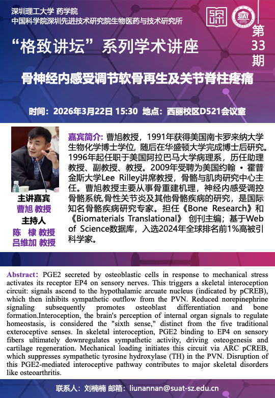 【“格致讲坛”系列学术讲座第33期】骨神经内感受调节软骨再生及关节脊柱疼痛